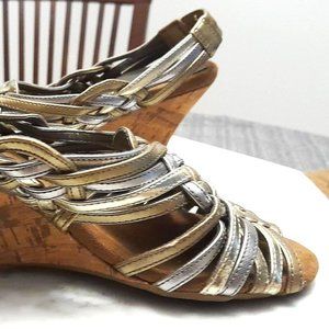 Aerosoles Woodstock Wedged Sandals with Metallic Straps. Size 6. Barely Used. Please refer to photos for details.