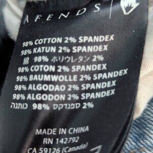 Hips 42 cm. Crotch 31.5 cm. Waist 34 cm Leg length (from waist) 97.5 cm. Adjustable straps. 5 button front and 1 zip and button as closure. 2 pockets back and 3 pocket front. Durable. Washed. 98% cotton and 2% spandex. Size: medium