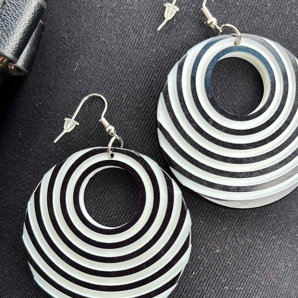 Chic monochrome striped earrings. Ideal for versatile styling.