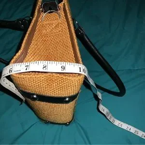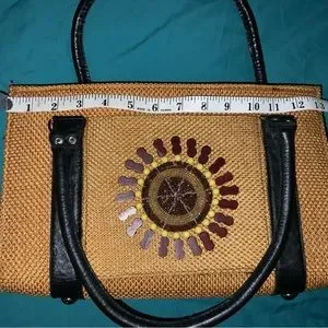 Handmade leather, burlap(?) and beaded African purse. Two carry handles with loops for crossbody strap, not included.