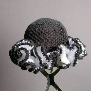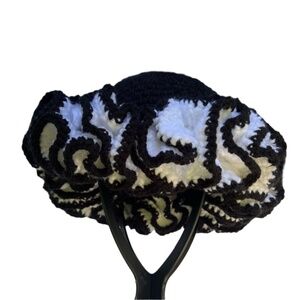 The African crochet ruffle hat reflects authentic African craftsmanship. The black and white colors match many styles. Handmade quality means each hat is truly unique. No two are exactly the same.