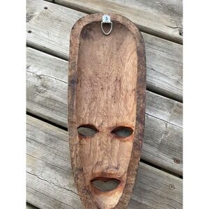 African Style Set Of Wood Face Mask Hand Carved Tribal Rustic