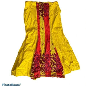 African Wax Stunning Fish tail style Elegant awesome quality ⭐️rich mustard burgundy African wax Ankara luxury Maxi Skirt L approx measurements photographed New
