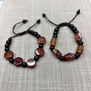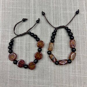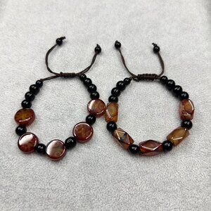 2 Agate & Black Onyx Adjustable Cord Bracelets