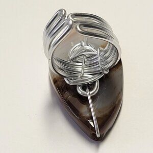 Agate Statement Ring Adjustable Band Handmade Semi Precious Ring