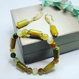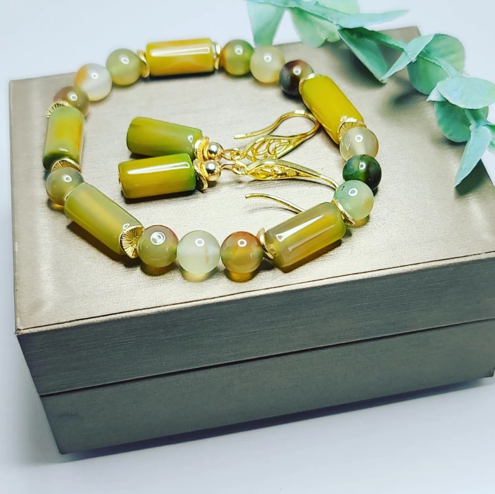 Yellow-Green Agate Bracelet and earrings set ✨️