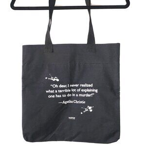 Great for book lovers, mystery fans, or everyday use. Strong double-stitched handles for durability. Promotional item by Harper publishing. No interior pocket.