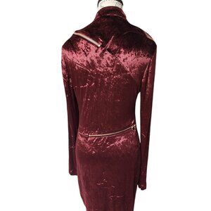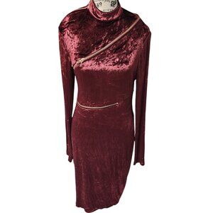 Agent Provocateur Burgundy Velvet Dress Size 14 Long Sleeve Asymmetric Zipper
