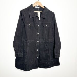 Agnes Orinda Plus Size BLACK Denim Jacket Button Up Long Sleeve Jean Jackets 1X
