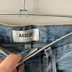 Agolde '90s Distressed Button-Fly High Rise Denim Straight Leg Jeans Blue 23 : Used and in good used condition