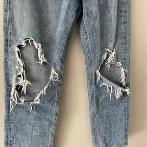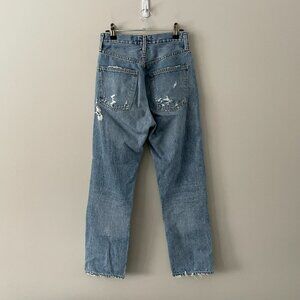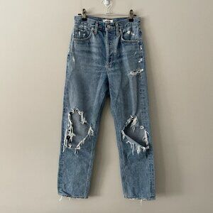 Agolde 90's Mid Rise Loose Fit Distressed Straight Leg Jeans In Fall Out Blue 23 : Used and in good used condition