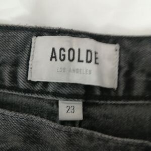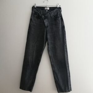 Agolde Criss Cross High Waist Loose Straight Jeans in Synchronize Gray Black 23