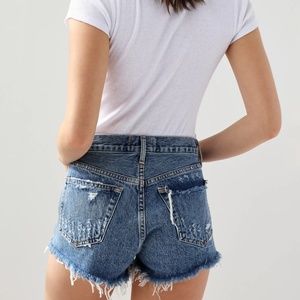 Made from non-stretch denim that's specially washed and distressed for a vintage look, these cut-offs are meant to fit a little loose. Think boyfriend style.