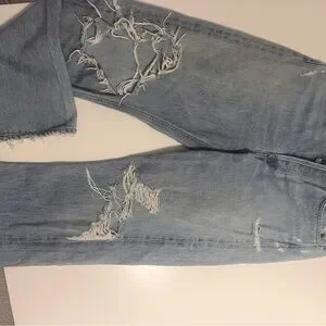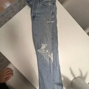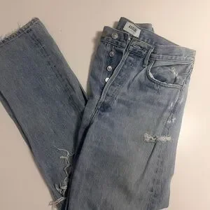 AGOLDE 90s Fit Mid Rise Loose Jeans in a light wash with distressed/ripped detailing.