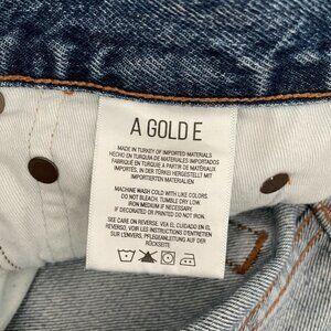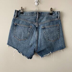 Agolde Parker Denim Shorts Caution Blue Raw Hem Mid-Rise Medium Wash 24: Used and in good used condition