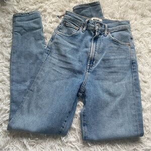 Made from stretch denim, AGOLDE's Pinch jeans are part of the brand's AW21 collection and are cut for a skinny fit. Sitting high at the waist for an elongating silhouette, they boast a distressed finish at the front and a raw cut hem for a casual feel.