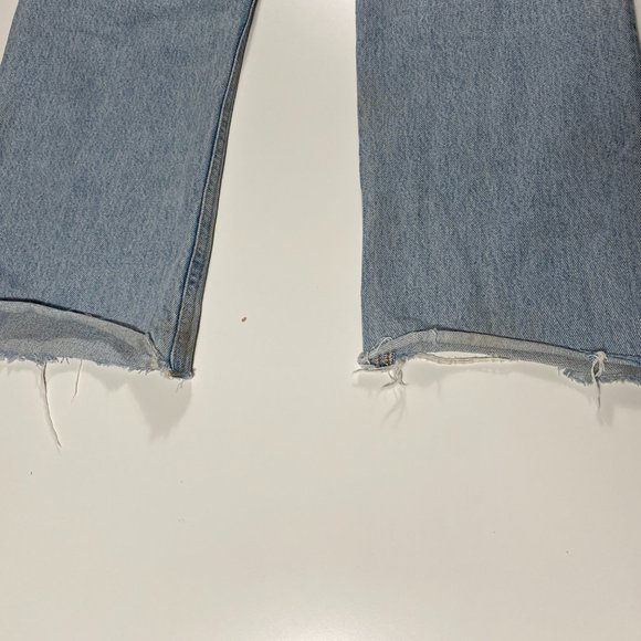 8.5/10 - A majority of the distressing is factory made, but the rear of the pant legs have begun to roll upwards. No other major flaws like holes or stains! Refer to photos for accurate used condition and sizing