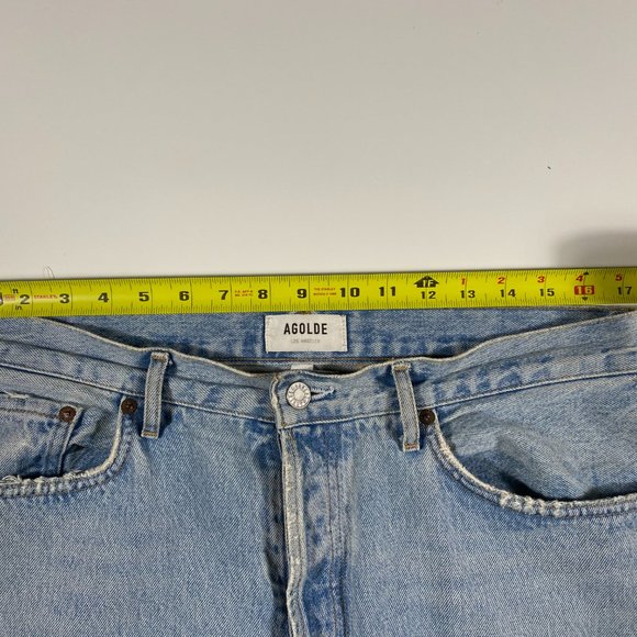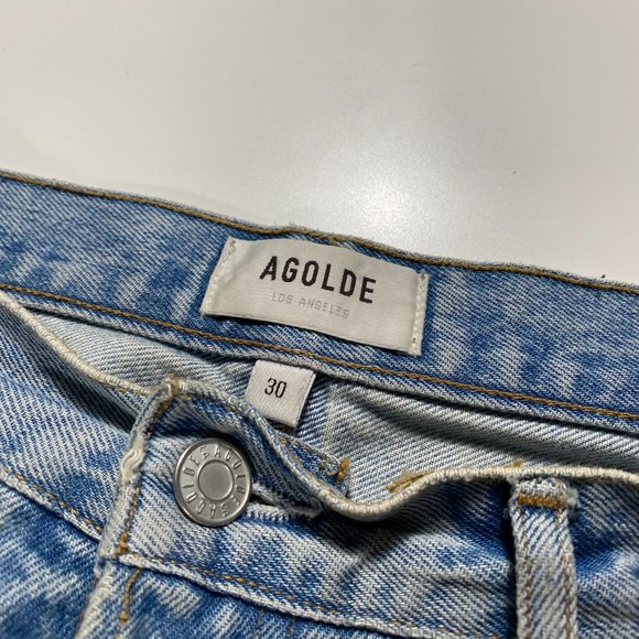 Agolde Pre-distressed button-fly Lana jeans in Riptide colorway womens size34x29