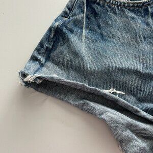 Agolde Raw Hem Denim Mid Rise Waist Button Fly Waist Parker Jean Shorts Blue 24 : Used and in good used condition
