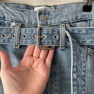 Agolde Reworked 90s High Rise Denim Casual Straight Leg Paperbag Jeans Blue 25 : Used and in good used condition 0526-112424