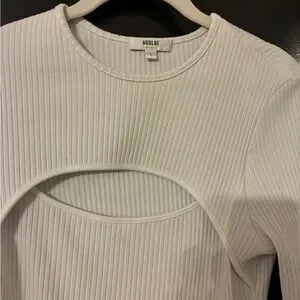 AGOLD never worn ribbed cream long sleeve top with a chic cutout design. Perfect for casual outings.
