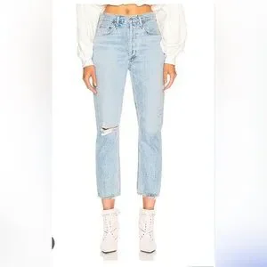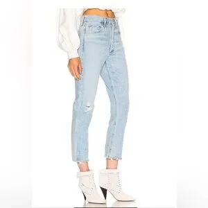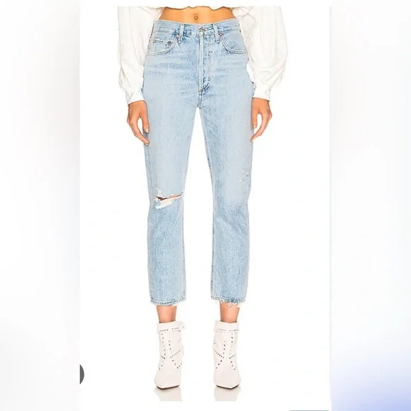 Experience the perfect blend of style and comfort with Agolde's Riley 25” denim. These jeans feature a distressed design with intentional rips and a vintage wash, offering a contemporary and lived-in look. The straight leg cut ensures a timeless silhouette, making them a versatile addition to any wardrobe.