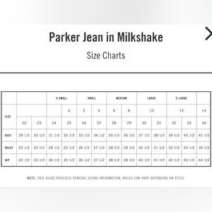 **Note** Size chart puctured is for the Parker Jean (similar fit)