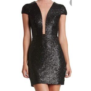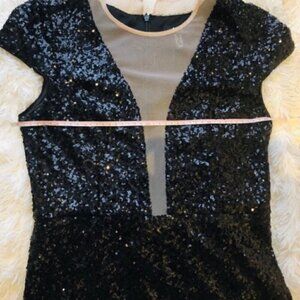 Aidan Mattox Sequin mini dress plunging illusion neck short dress Size 10