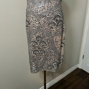 Aidan Mattox beaded cocktail dress 6 100% silk flapper glam boho Hollywood