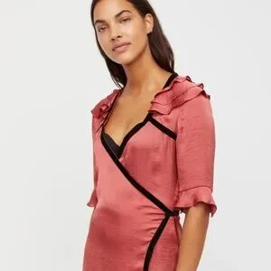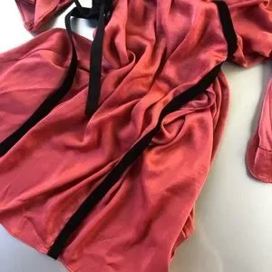 Color is 'Carnation Red' with black velvet trim that continues into a waist tie band which can be tied on the side or in the back!