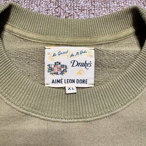 Aime Leon Dore x Drake's ALD Crest Logo Crewneck Sweatshirt Olive Green Mens XL