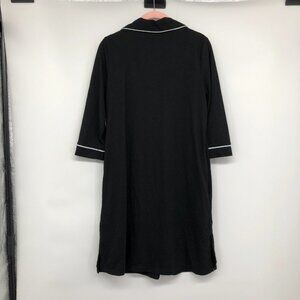 Black knee length 3/4 sleeve button down nightgown with white contrast binding