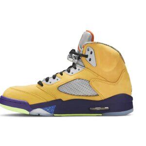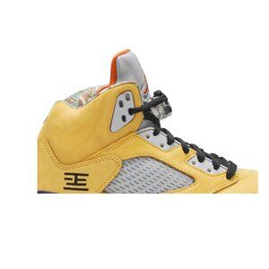 The Air Jordan 5 Retro SE ‘What The’ celebrates the 30th anniversary of the classic silhouette with a mashup design incorporating elements from coveted Air Jordan 5s of years past. Most notably, the right shoe features the yellow suede upper of the ultra-limited ‘Tokyo’ release, complete with stylized ‘23’ on the lateral heel. The left shoe borrows the red suede upper of the ‘Raging Bull’ pack, accented with the ‘Shanghai’ heel emblem. Additional source colorways include the ‘Bel-Air,’ ‘Laser’ and ‘Quai 54’ from 2011.