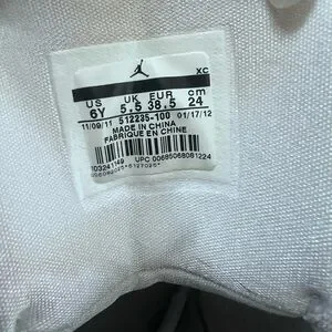 Stylish Air Jordan sneakers in white and gray. Perfect for casual wear. 6Y fit women 7.5/8