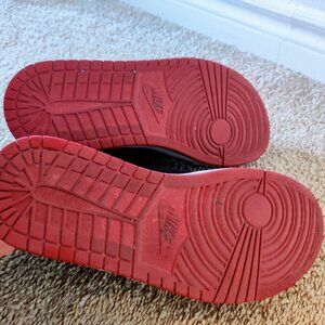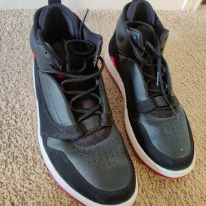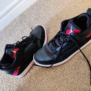 Selling a mint condition pair of Air Jordans fadeaway black and red shoes in size 10.