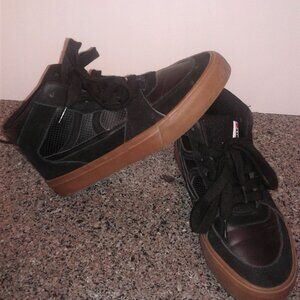 Add Airwalk men’s Brick sneakers to your shoe collection for a cool everyday look. The sneakers are composed of a faux leather, cow suede, and canvas upper and rubber outsole, so they’ll be comfy for all-day wear. The sneakers are designed with a round toe, a lace-up closure, a pull loop, and a cool all-over printed insole. The high-top design makes them pair perfectly with your favourite jeans.Size 5 men's