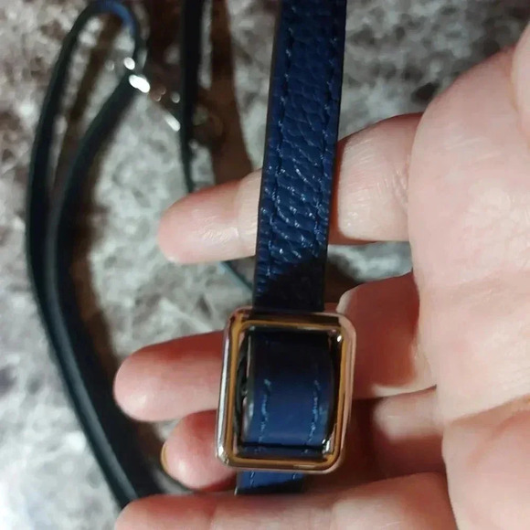 Ajustable Navy Blue Leather with Silver Hardware Replacement Strap for Bag