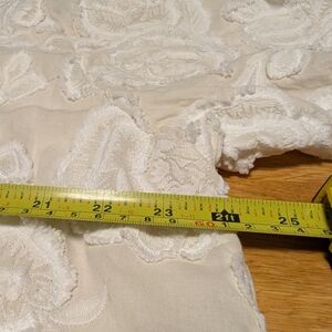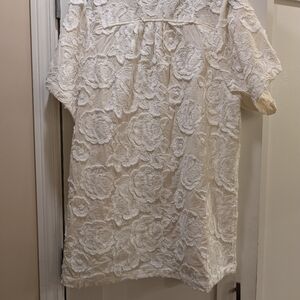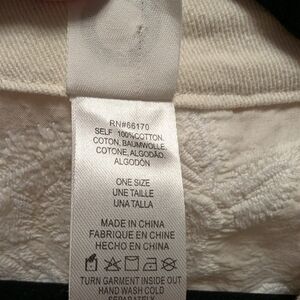 Beautiful heavy weight cotton with substantial border in front and around neck. Embossed floral motif. Looks great with all cream or all black. Dress it up or down.