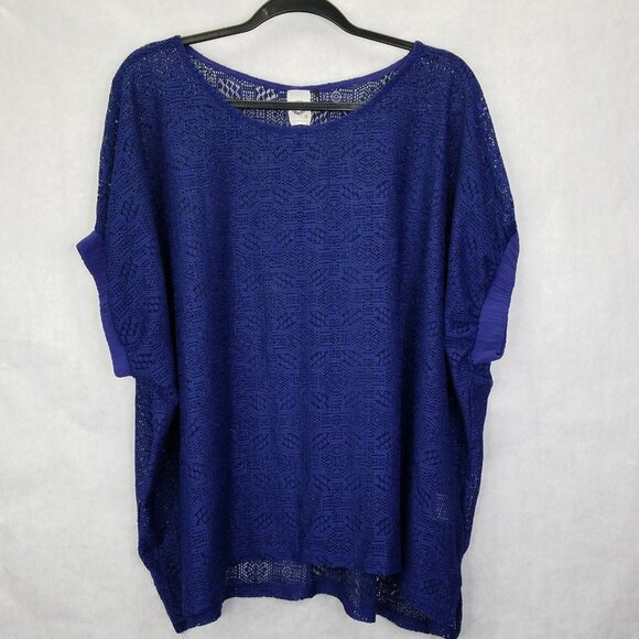 Akemi + Kin Anthropologie Bratton Shirt M/L Blue Crochet Lace Short Sleeve Top