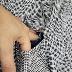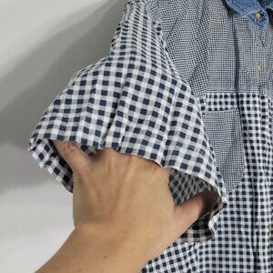 Akny Vintage Jean Blue White Gingham 100% Cotton Short Sleeve Button-Up Shirt L