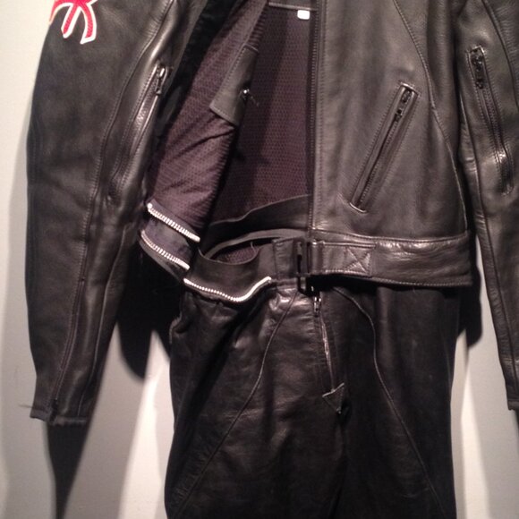 In both pieces, the interior is made of nylon with holes for comfort and good ventilation. All the velcro and zippers are strong and work well. The whole is in perfect condition and the leather is very supple.