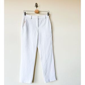 Chic and versatile white trousers. Perfect for any occasion. These Akris pants are crafted in wool stretch gabardine for a comfortable fit and elegant look. They feature a flattering high rise and cropped leg. A front closure and pockets complete this modern style.