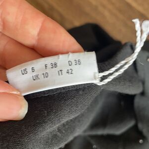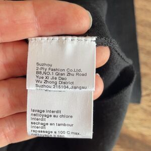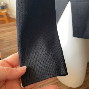 Is new without tags but was damaged when trying in in the store . Professional repair was done in the v neck