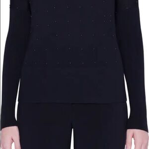 Akris punto 6 nwot studded v neck merino wool black sweater