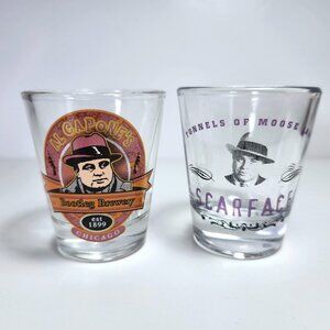 Al Capone Shot Glasses Lot of 2 Scarface Bootleg Brewery Tunnels of Moosejaw