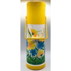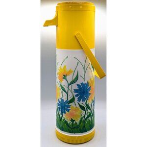 Sip in style with the vibrant Aladdin's Pump-A-Drink Thermos, featuring the enchanting Floral Fantasy pattern. This 1 qt (.97 liter) thermos is as practical as it is decorative, with a durable plastic outer shell and a glass inner that keeps your beverages at the desired temperature for hours. Whether you're enjoying a hot cup of coffee or a refreshing cold beverage, this thermos is designed to suit your needs. The thermos comes equipped with a convenient push-button lid, making it spill-proof and easy to use. Its compact size, measuring 13.5" in height and 4.25" in width, makes it the perfect companion for work, school, or outdoor adventures. The floral design adds a touch of whimsy to your day, while the insulated construction ensures your drink stays just the way you like it.