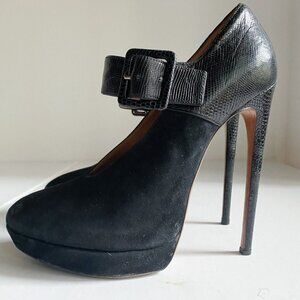 Alaia Black Suede Lizard Skin Buckle Detail Platform Super High Stilettos 41.