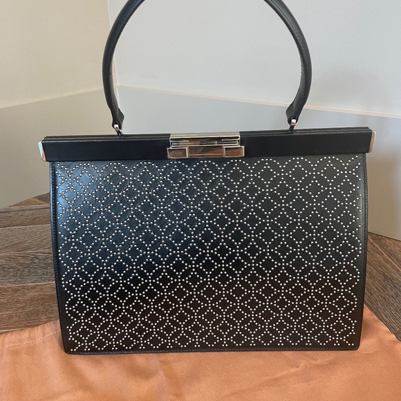 This bag is GORGEOUS. The stud detailing is so unique and the shape of the bag is so elegant. This bag is no longer available from Alaia. It has a top handle and a removable crossbody strap with similar stud detailing. A true statement piece. Its in perfect condition and could be mistaken for brand new!