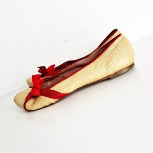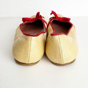 Alaia Raffia Straw ballet flats with red bow detail and trim size 36