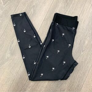 Black leggings with white embroidered palm tree details